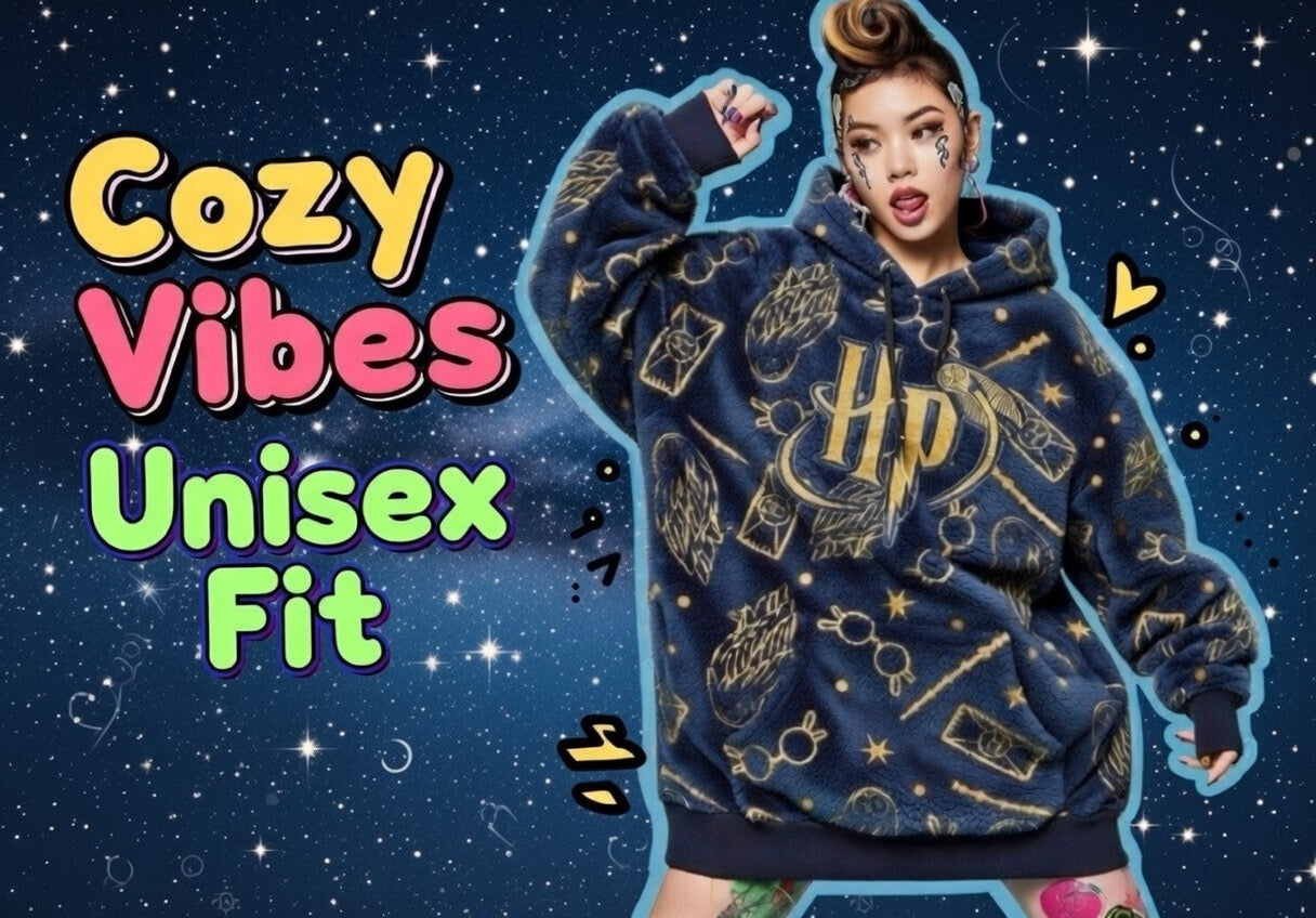 Harry Potter Blue and Gold cosy fleece hoodie - Adults one size fits most.